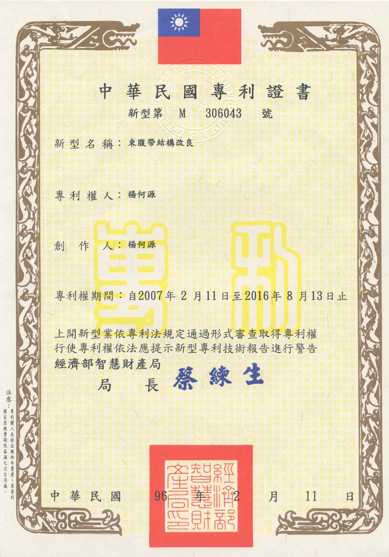 束腹帶結構改良  新型專利字號第 M306043號