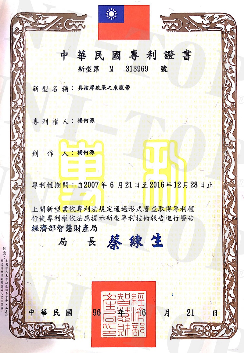 具按摩效果之束腹帶 新型專利字號第 M313969號