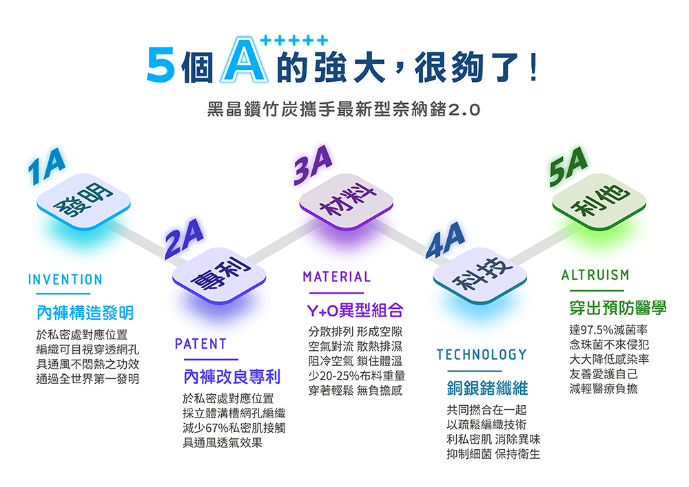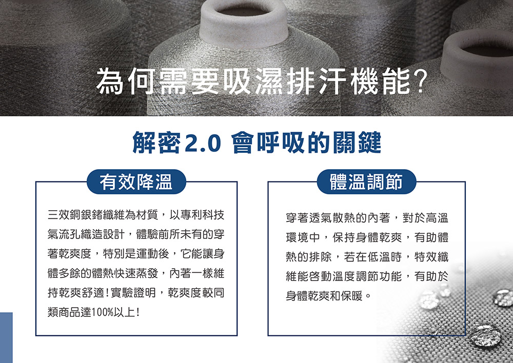 ■ 超導純銅纖維與美軍特戰級抑菌銀纖維採360度環繞交織 加強私密肌抑菌力,形成一道防護罩