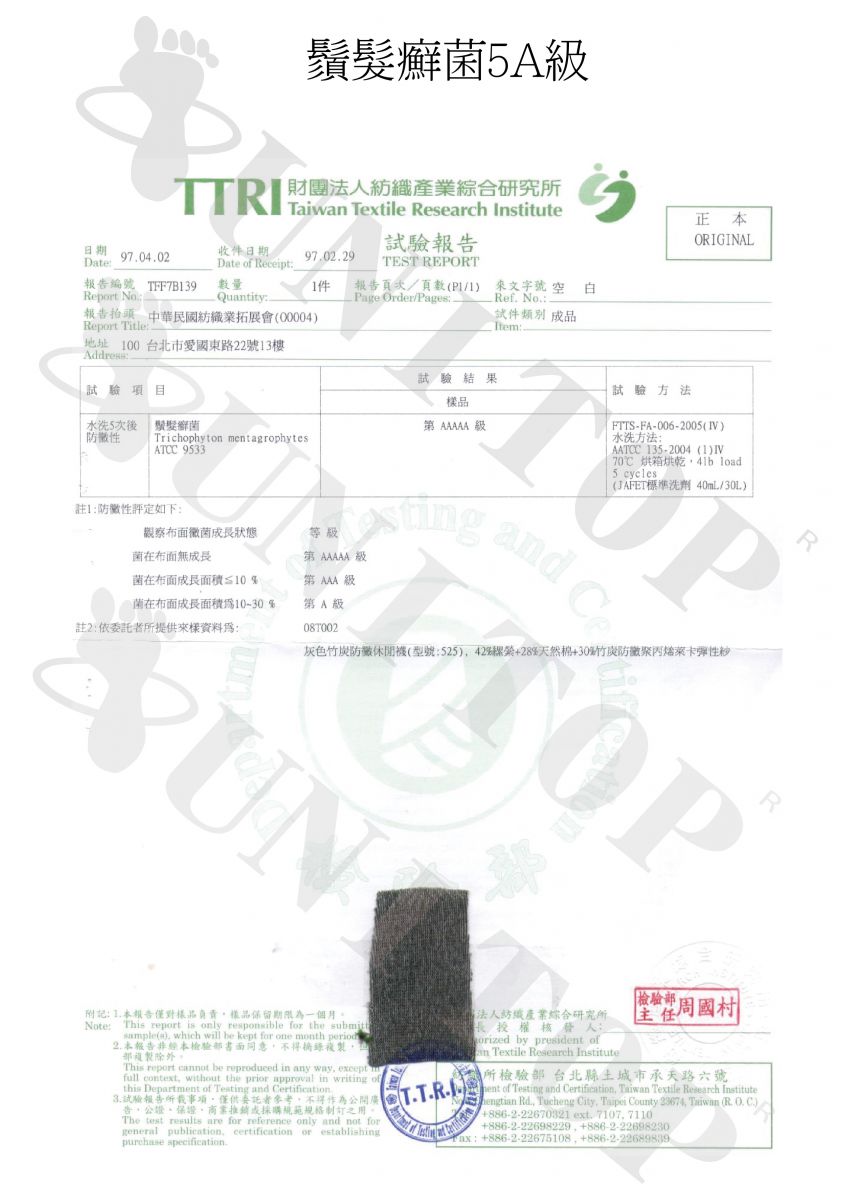 enlightened 典型的鬚髮毛癬菌感染在炎熱季節是很常見的, 被感染的足部, 有輕重不等的瘙痒,疼痛,炎症或水泡形成, 並可伴有繼發的細菌感染, 注意足部衛生與穿著可抑菌的襪款來輔助是很必要的 , 特別推薦足好 UNI-TOP 銀纖維五趾襪, 針對此菌種可達到5A 級的效用, 讓您與黴菌感染說再見 !!