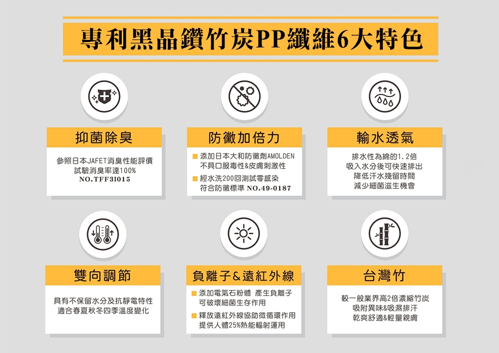 能量持續 / 恆溫調節 / 吸濕快乾 / 透氣除臭 / 輕量減壓